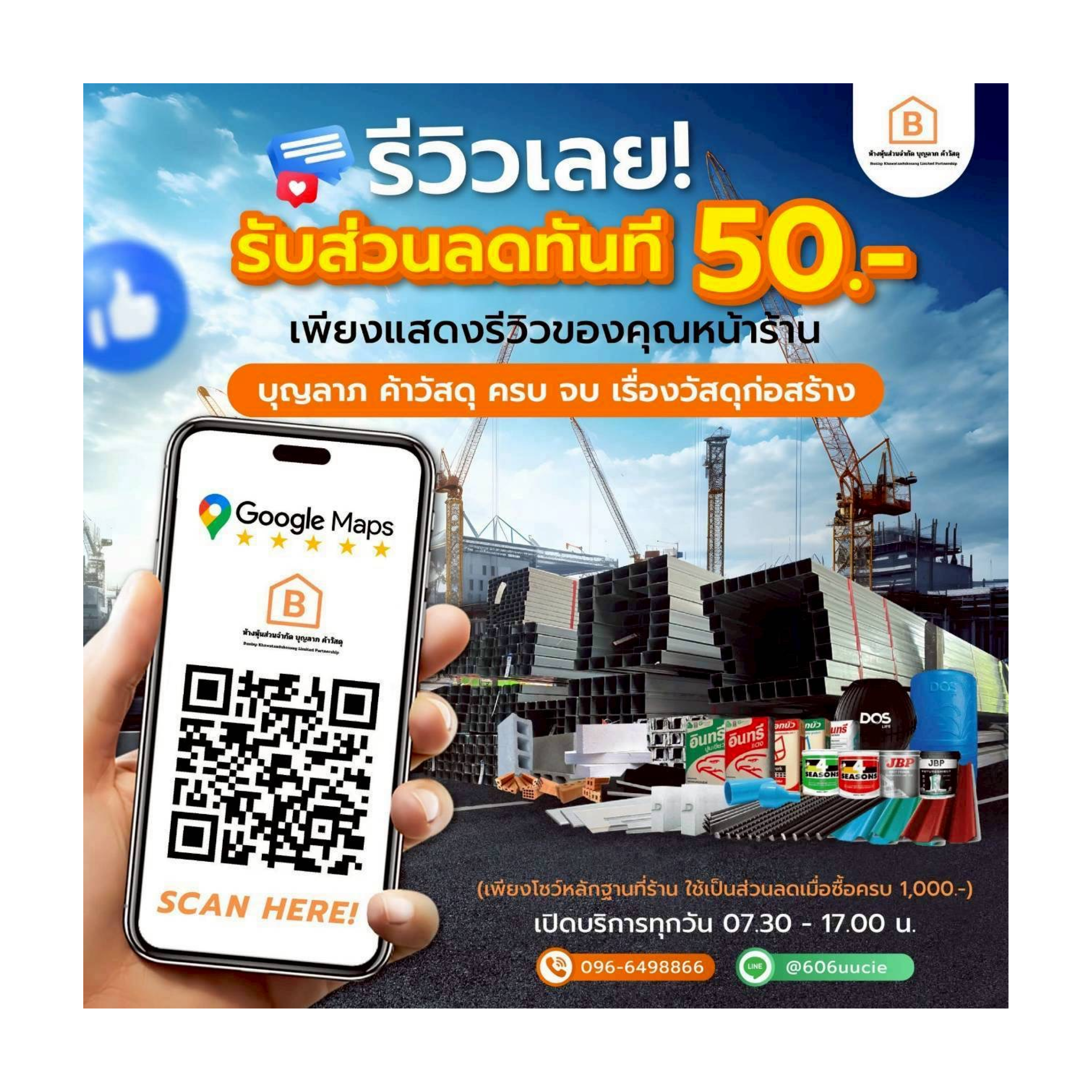 "สั่งของมาต่อเติมร้าน พนักงานแนะนำดีมากค่ะ ได้ของตรงสเปค ราคาไม่แพง"